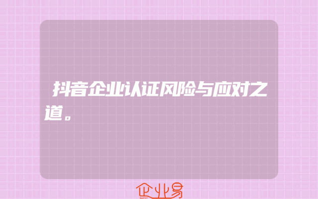 - 抖音企业认证风险解析与应对之道一、抖音企业认证的重要性随着移动互联网的迅猛发展,抖音作为短视频领域的佼佼者,已经成为众多企业营销的新阵地。通过抖音企业认证,企业不仅可以提升品牌知名度和信誉度,还能获得更多精准用户的关注和信任,进而增加商业机