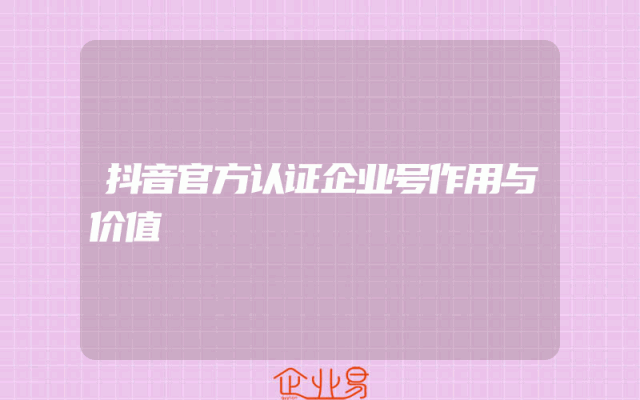 - 抖音官方认证企业号作用与价值