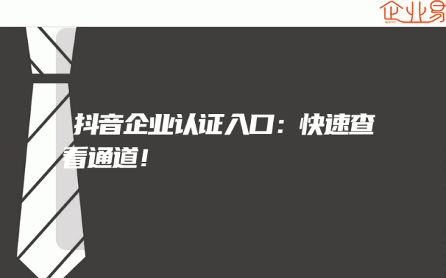 - 抖音企业认证入口:快速查看通道!