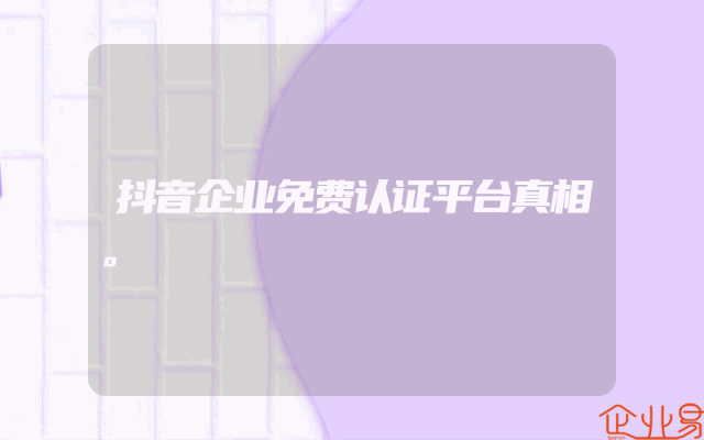 - 抖音企业免费认证平台真相。