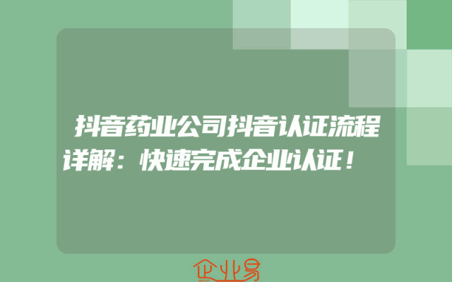 - 抖音药业公司抖音认证流程详解:快速完成企业认证!