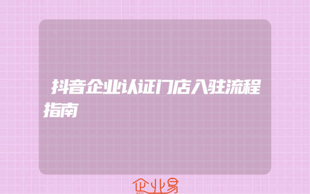 - 抖音企业认证门店入驻流程指南