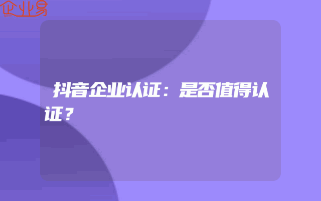 - 抖音企业认证:是否值得认证?