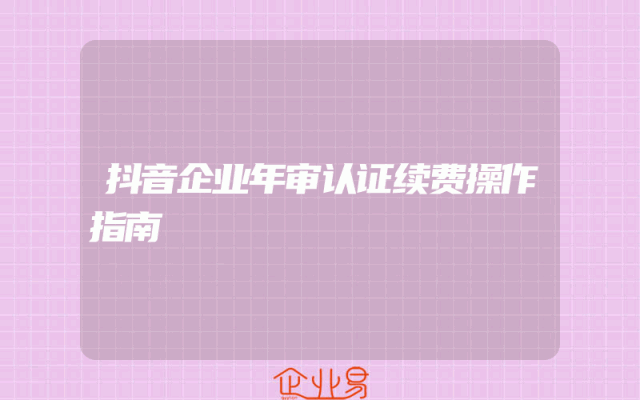 - 抖音企业年审认证续费操作指南