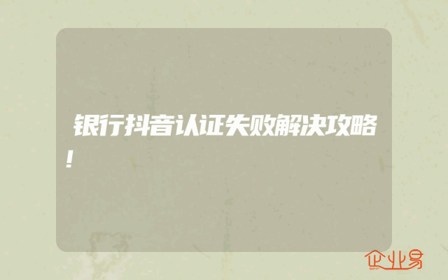 - 银行抖音认证失败解决攻略了解抖音认证政策及银行需求首先,面对银行抖音认证失败的情况,了解抖音的认证政策和银行自身的需求是关键。抖音对于企业认证的规则是非常明确和严格的,银行在进行认证时需要提供的资料和信息必须齐全且真实。因此,银行在申请前需