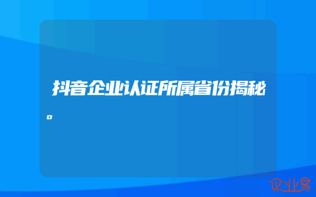 - 抖音企业认证所属省份揭秘一、抖音企业认证概述随着移动互联网的飞速发展,抖音作为短视频领域的佼佼者,吸引了众多企业入驻。企业认证是抖音平台上的重要环节,不仅提升了企业的品牌知名度,还能为企业带来更多的商业机会。而企业在选择认证时,所属省份的选