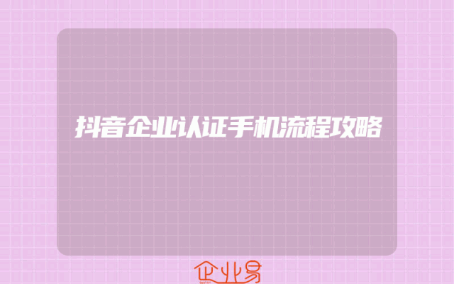 - 抖音企业认证手机流程攻略