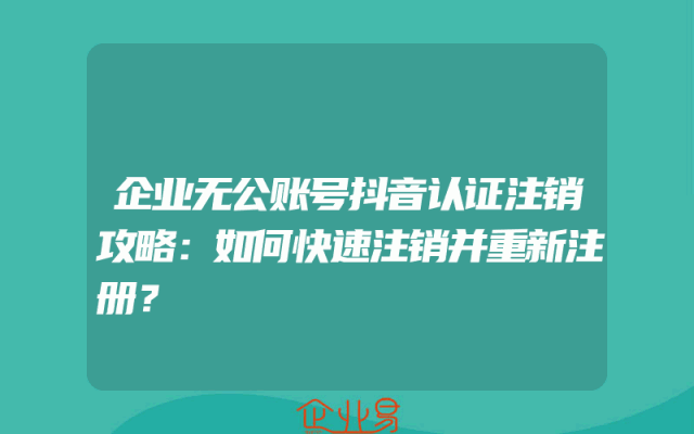 - 企业无公账号抖音认证注销攻略:如何快速注销并重新注册?