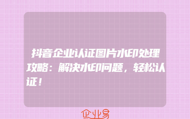 - 抖音企业认证图片水印处理攻略:解决水印问题,轻松认证!一、了解抖音企业认证与图片水印的基本概念在进行抖音企业认证时,我们常常会遇到图片水印的问题。因此,首先我们需要明确什么是抖音企业认证以及什么是图片水印。抖音企业认证是为了确保企业账号的真