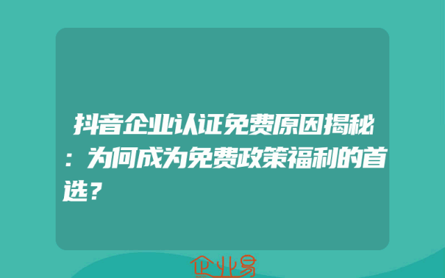- 抖音企业认证免费原因揭秘:为何成为免费政策福利的首选?