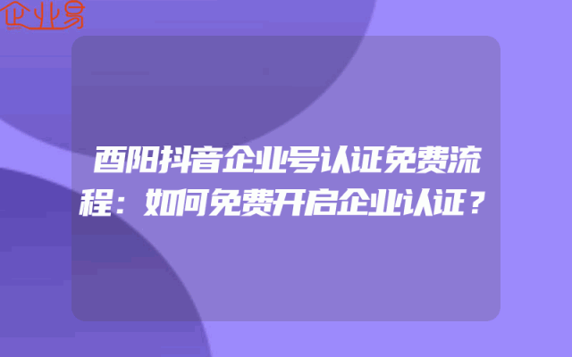 - 酉阳抖音企业号认证免费流程:如何免费开启企业认证?