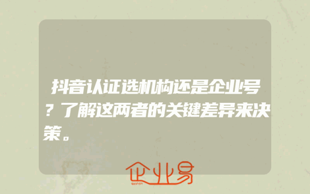 - 抖音认证选机构还是企业号?了解这两者的关键差异来决策。