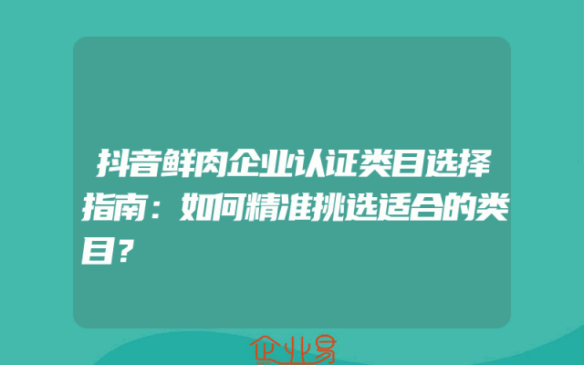 - 抖音鲜肉企业认证类目选择指南:如何精准挑选适合的类目?