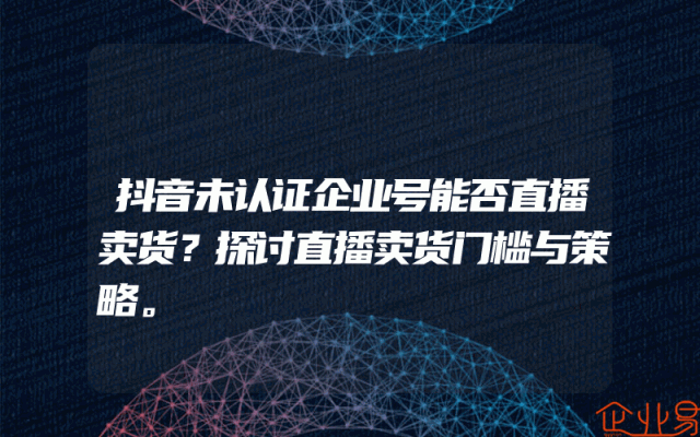 - 抖音未认证企业号能否直播卖货?探讨直播卖货门槛与策略。