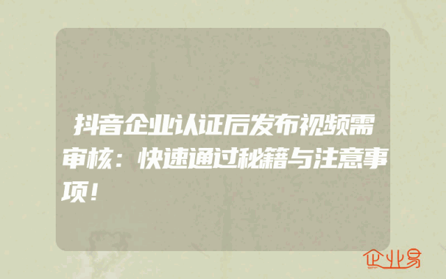 - 抖音企业认证后发布视频需审核:快速通过秘籍与注意事项!