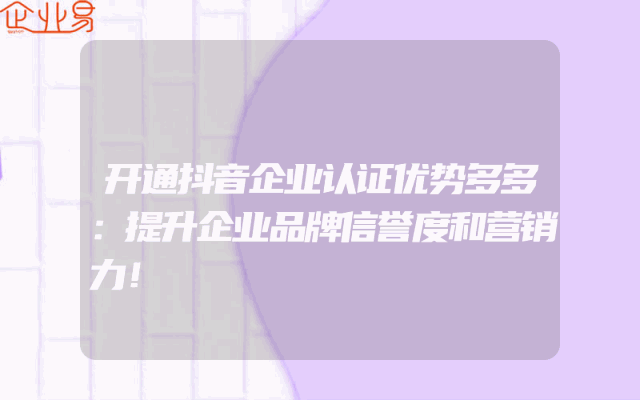 - 开通抖音企业认证优势多多:提升企业品牌信誉度和营销力!