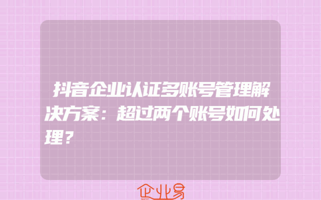 - 抖音企业认证多账号管理解决方案:超过两个账号如何处理?