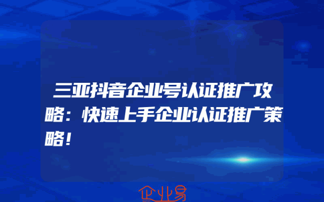 - 三亚抖音企业号认证推广攻略:快速上手企业认证推广策略!