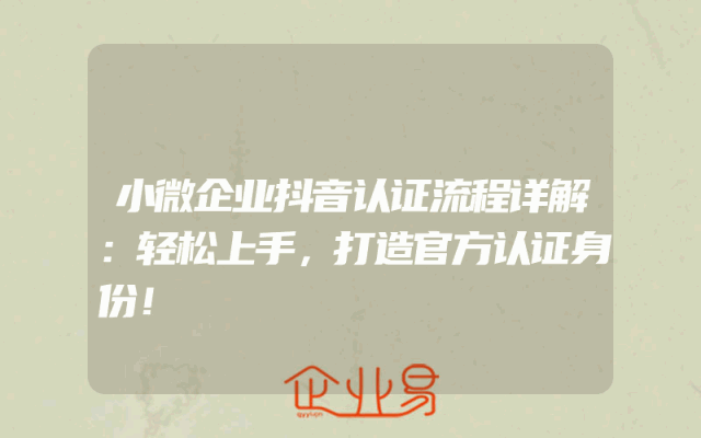 - 小微企业抖音认证流程详解:轻松上手,打造官方认证身份!
