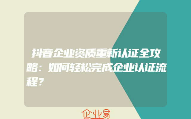 - 抖音企业资质重新认证全攻略:如何轻松完成企业认证流程?