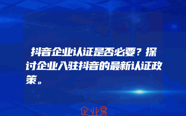 - 抖音企业认证是否必要?探讨企业入驻抖音的最新认证政策。