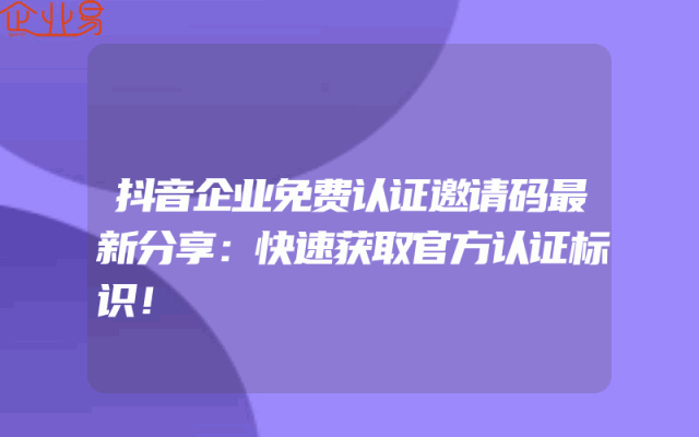 - 抖音企业免费认证邀请码最新分享:快速获取官方认证标识!