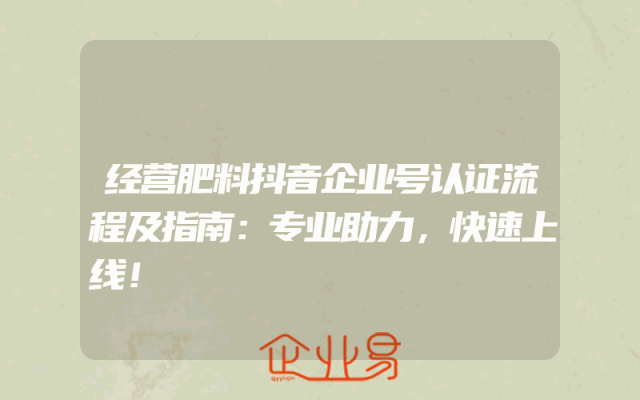 - 经营肥料抖音企业号认证流程及指南:专业助力,快速上线!