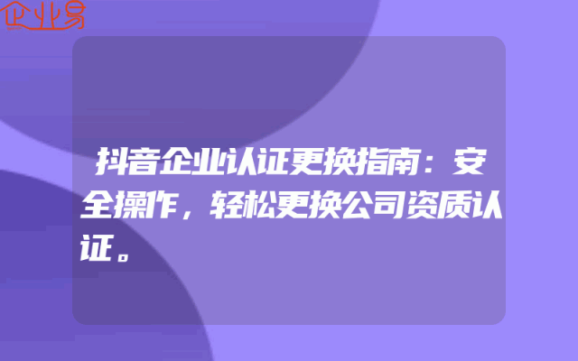 - 抖音企业认证更换指南:安全操作,轻松更换公司资质认证。