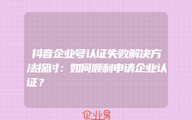 - 抖音企业号认证失败解决方法探讨:如何顺利申请企业认证?