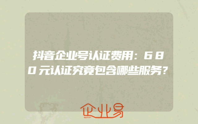- 抖音企业号认证费用:680元认证究竟包含哪些服务?