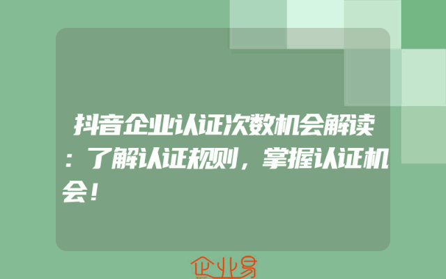 - 抖音企业认证次数机会解读:了解认证规则,掌握认证机会!