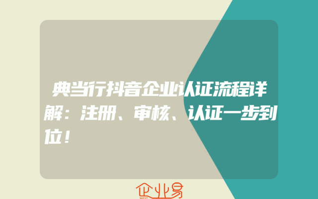 - 典当行抖音企业认证流程详解:注册、审核、认证一步到位!