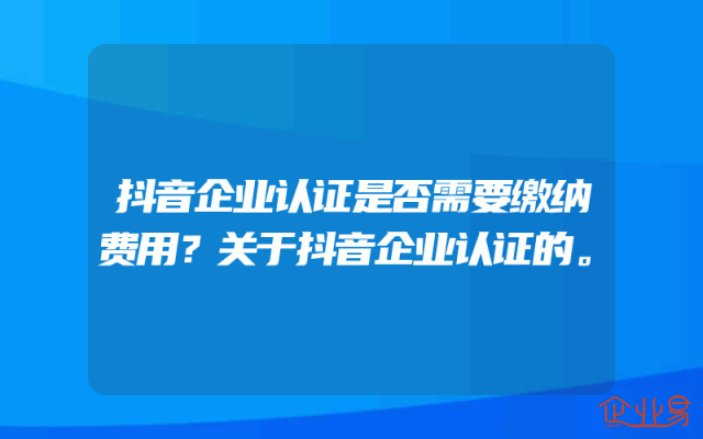 - 抖音企业认证是否需要缴纳费用?关于抖音企业认证的。
