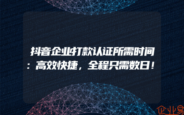 - 抖音企业打款认证所需时间:高效快捷,全程只需数日!
