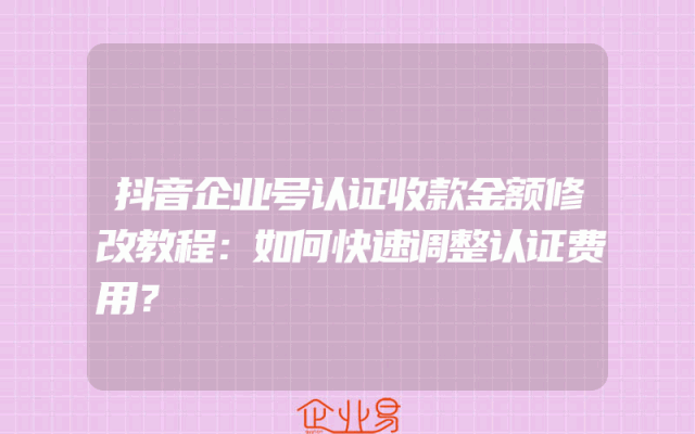 - 抖音企业号认证收款金额修改教程:如何快速调整认证费用?