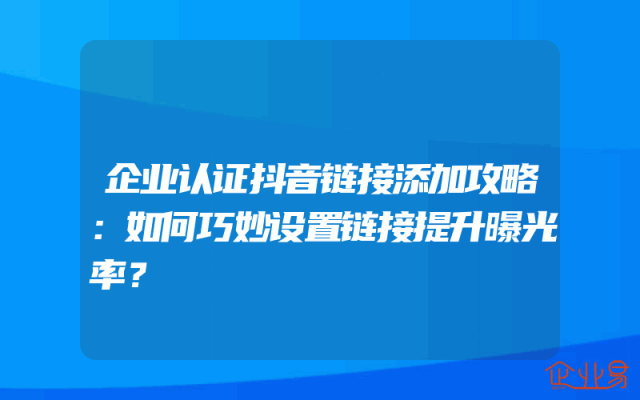 - 企业认证抖音链接添加攻略:如何巧妙设置链接提升曝光率?抖音平台凭借强大的用户基础及活跃的社区氛围,成为众多企业竞相追逐的营销圣地。对于企业而言,巧妙设置抖音链接,不仅能增加品牌曝光度,还能有效