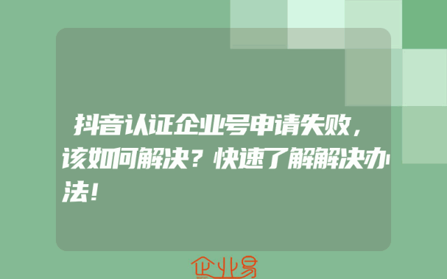 - 抖音认证企业号申请失败,该如何解决?快速了解解决办法!