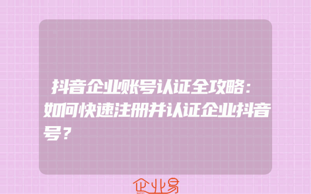 - 抖音企业账号认证全攻略:如何快速注册并认证企业抖音号?