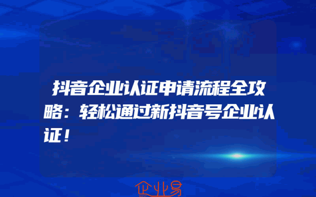 - 抖音企业认证申请流程全攻略:轻松通过新抖音号企业认证!