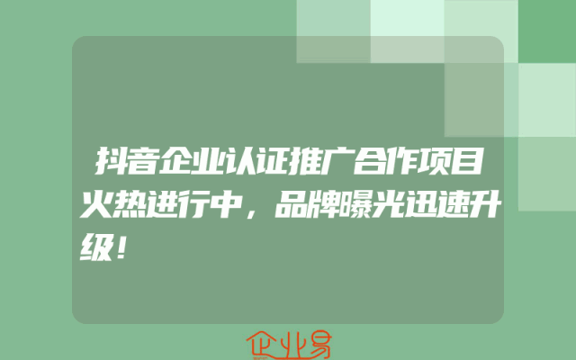 - 抖音企业认证推广合作项目火热进行中,品牌曝光迅速升级!