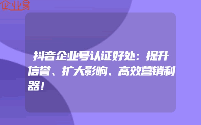 - 抖音企业号认证好处:提升信誉、扩大影响、高效营销利器!