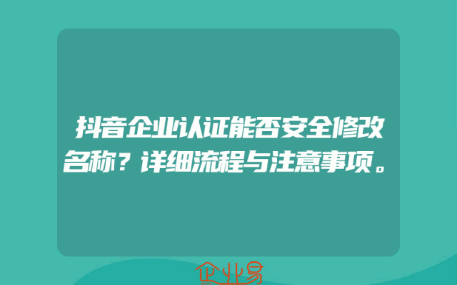 - 抖音企业认证能否安全修改名称?详细流程与注意事项。