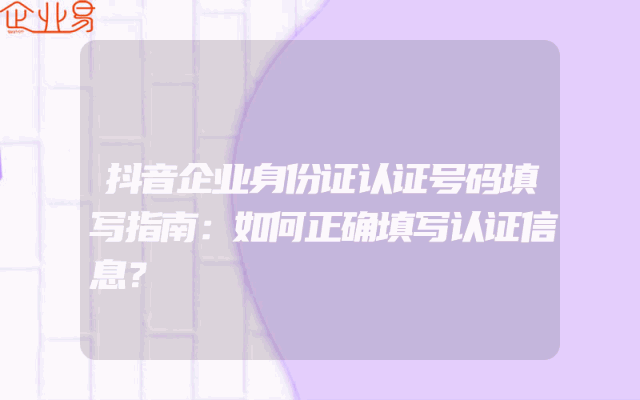 - 抖音企业身份证认证号码填写指南:如何正确填写认证信息?
