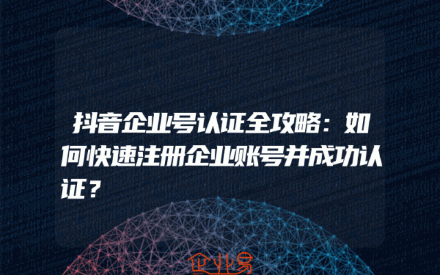 - 抖音企业号认证全攻略:如何快速注册企业账号并成功认证?