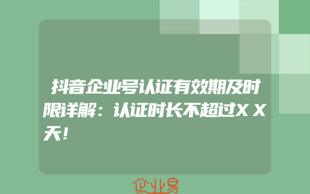 - 抖音企业号认证有效期及时限详解:认证时长不超过XX天!