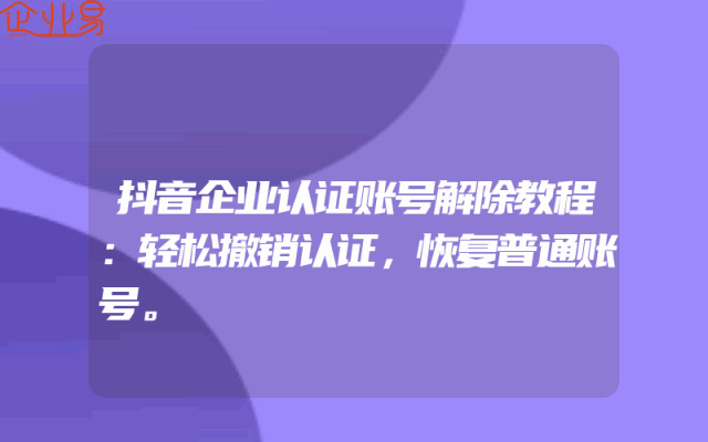 - 抖音企业认证账号解除教程:轻松撤销认证,恢复普通账号。