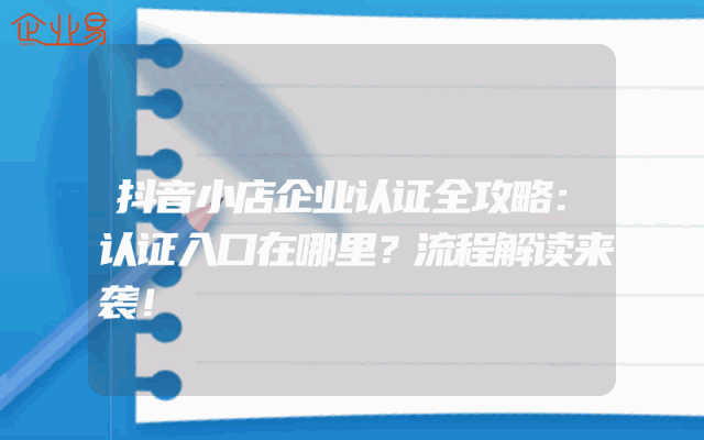 - 抖音小店企业认证全攻略:认证入口在哪里?流程解读来袭!
