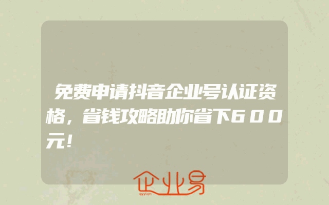 - 免费申请抖音企业号认证资格,省钱攻略助你省下600元!