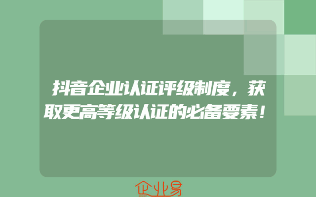 - 抖音企业认证评级制度,获取更高等级认证的必备要素!