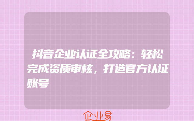 - 抖音企业认证全攻略:轻松完成资质审核,打造官方认证账号